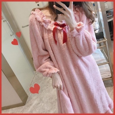 Amazon ふわふわ モコモコ 可愛い 暖かい レディース 女性 婦人用 部屋着 寝間着 カジュアル レース付き 姫系 ポケット付き フランネル ルームワンピース パジャマ ピンク ルームワンピース ネグリジェ 通販